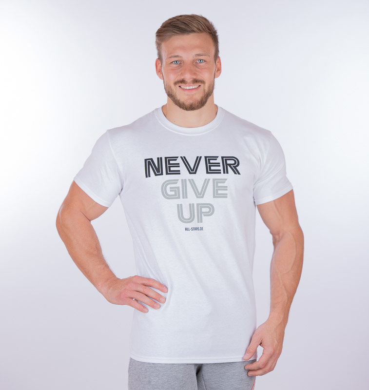Kvalitní tričko s potiskem "ALL STARS - NEVER GIVE UP" je vhodné nejen pro trénink v posilovně, ale