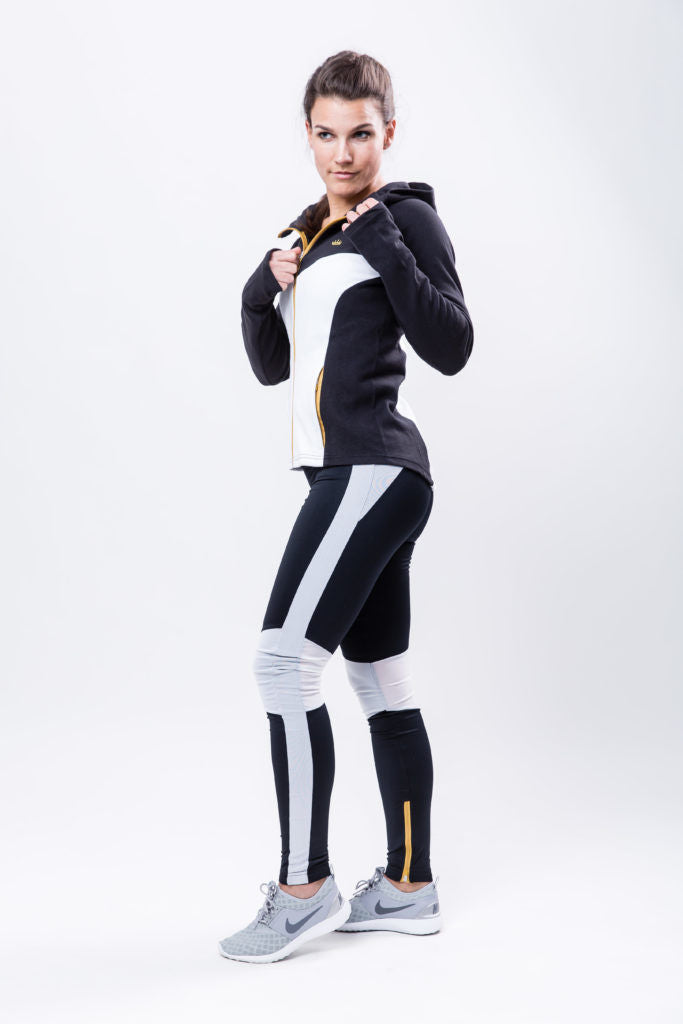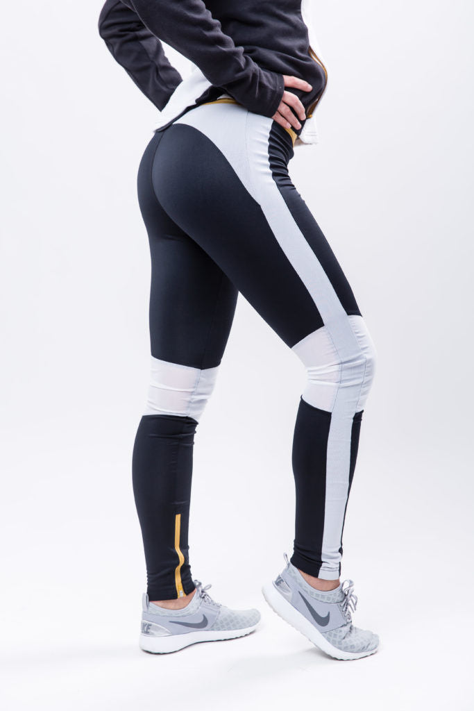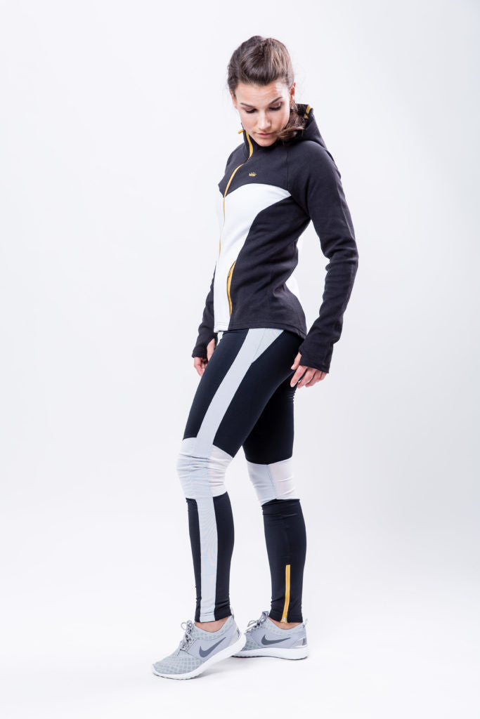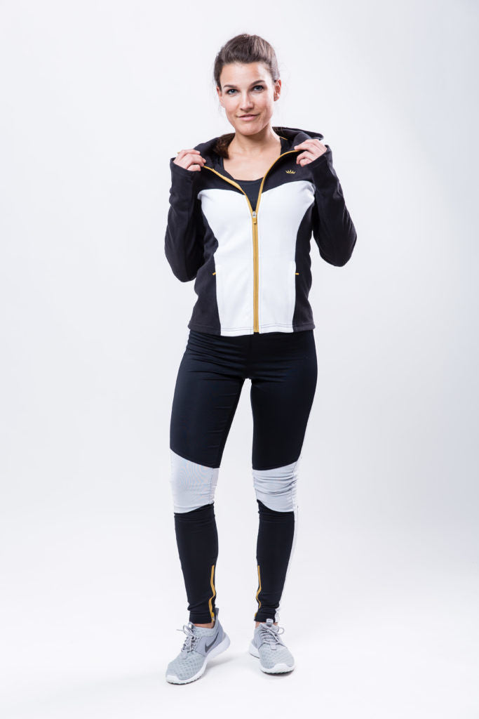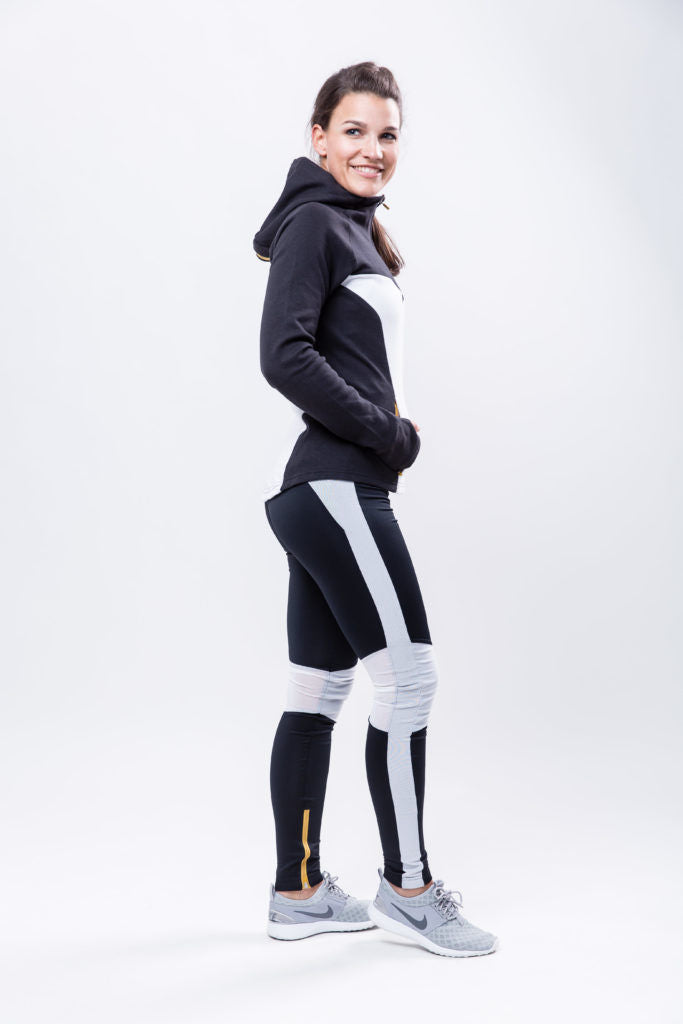 Ať už v posilovně nebo venku, legíny z naší "Edge-Line" přinášejí funkčnost a skvělý vzhled do vašeho sportovního každodenního života. Extra široký a elastický zlatý pás vám zaručuje maximální flexibilitu při tréninku. U legín „Absolute Midnight“ byly na zákolenních jamkách začleněny stylové síťované vsadky pro nejlepší větrací vlastnosti. K tomu patřící sportovní podprsenka zdůrazňuje vaši ženskost a navíc se skvěle kombinuje s tričkem.
