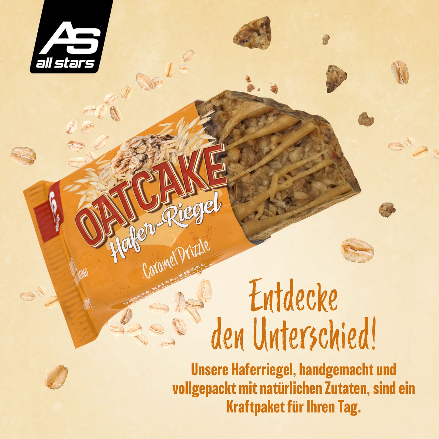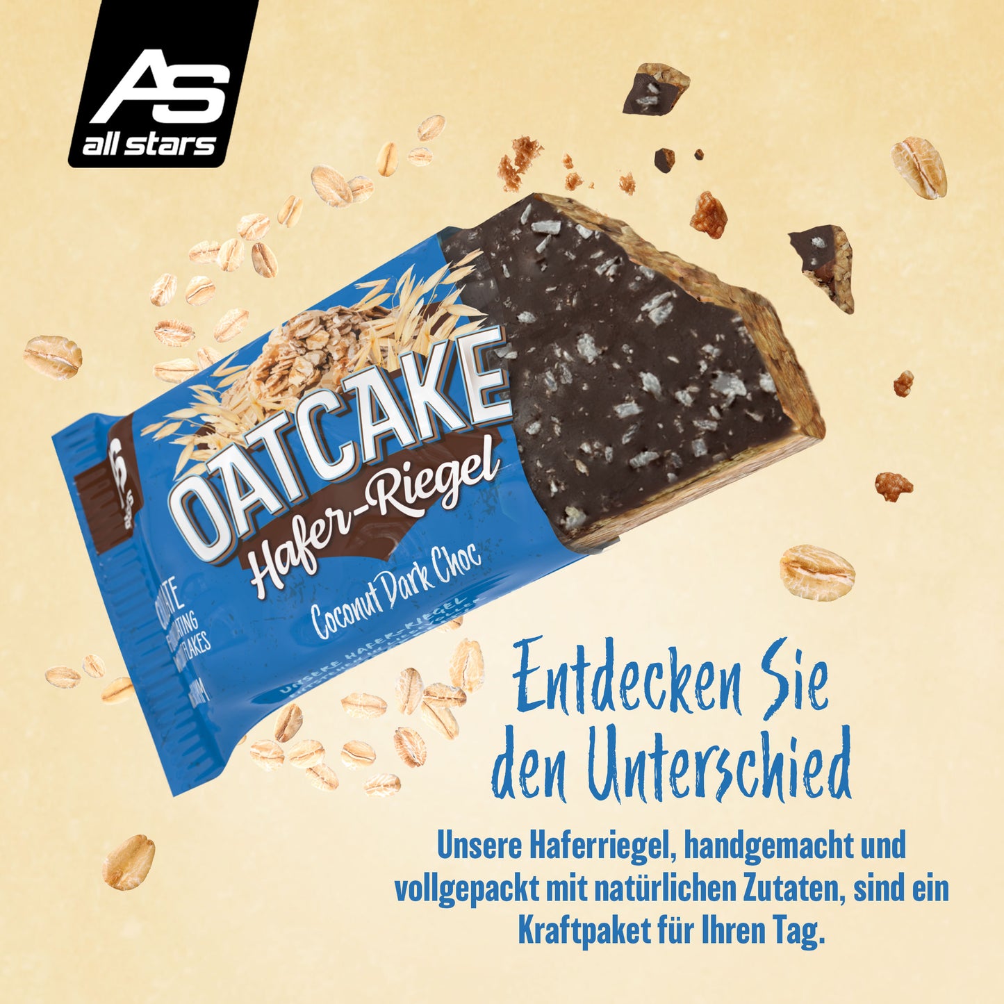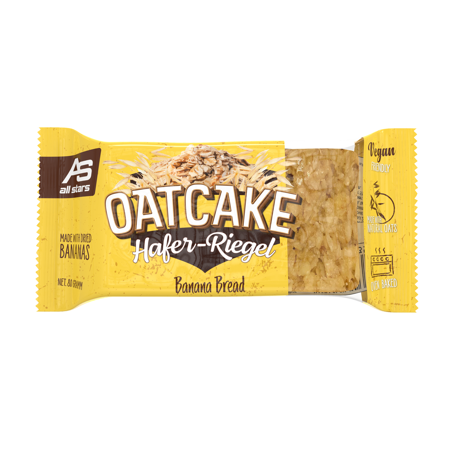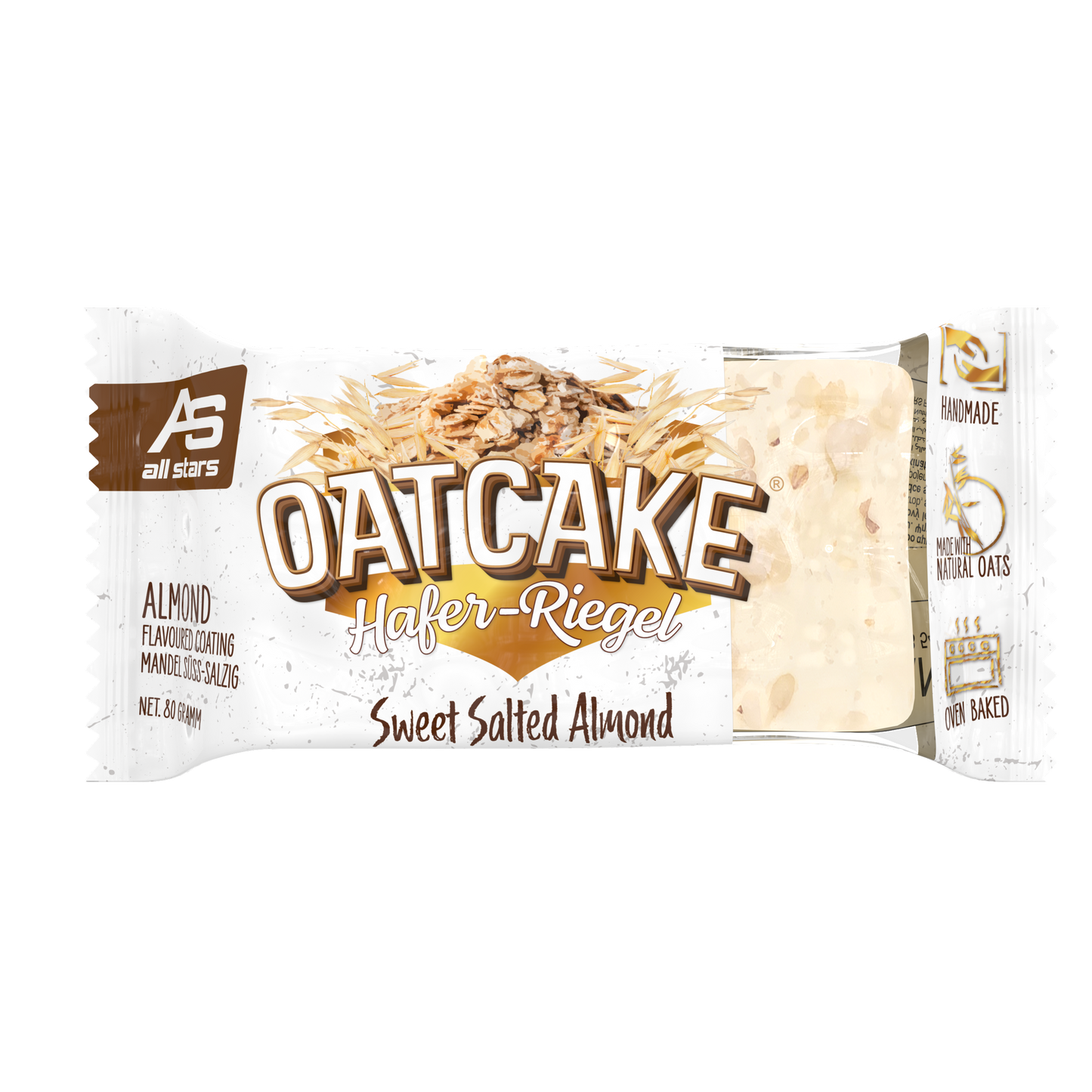 Nová 80g ovesná tyčinka od ALL STARS je ideální náhradou jídla před tréninkem nebo na cestách, když není čas na pořádné jídlo. OATCAKE tyčinka je vyrobena s láskou ručně a pečena v troubě.