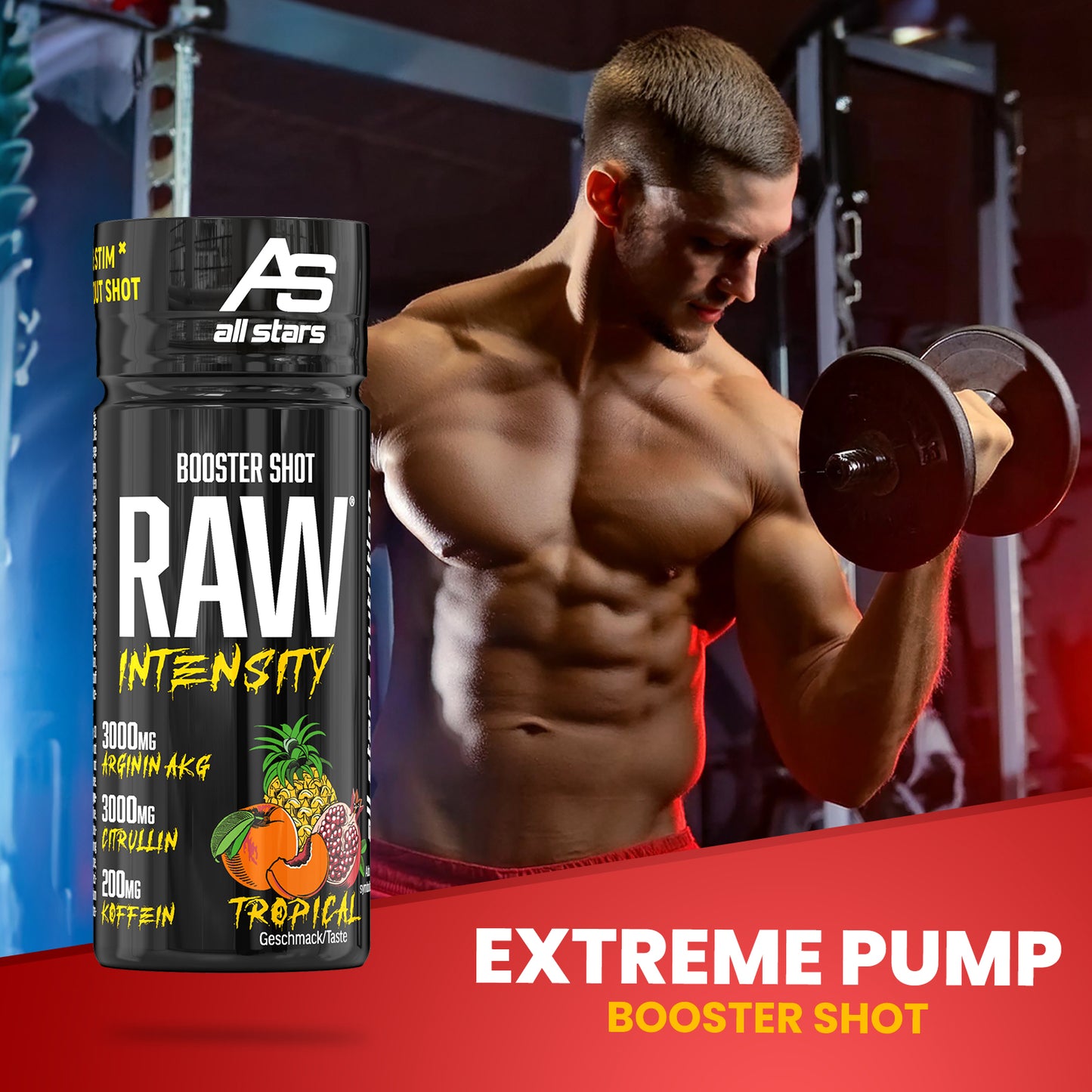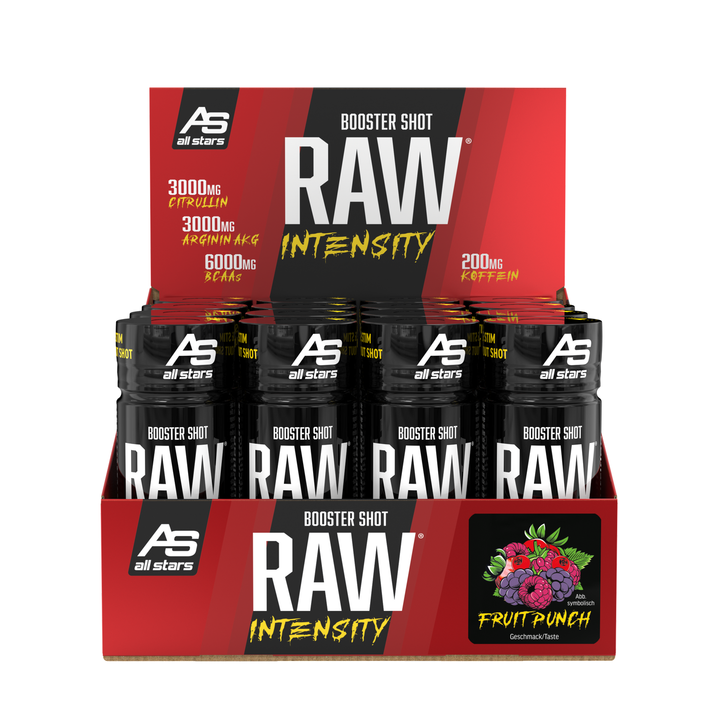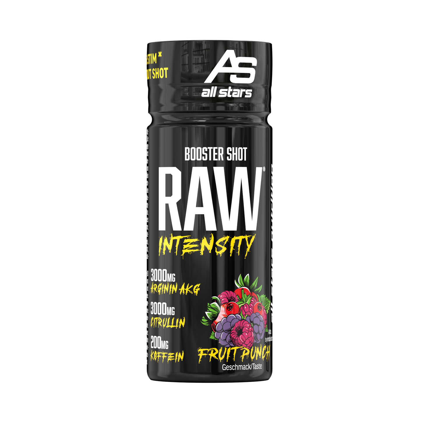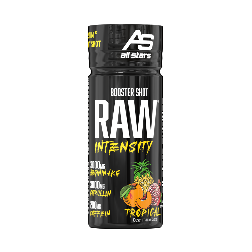 Raw Intensity Booster Shot před tréninkem – pro nakopnutí a úspěšný trénink – lahodně ovocný a připravený k přímé konzumaci. Perfektní do sportovní tašky v 60ml ampulce.