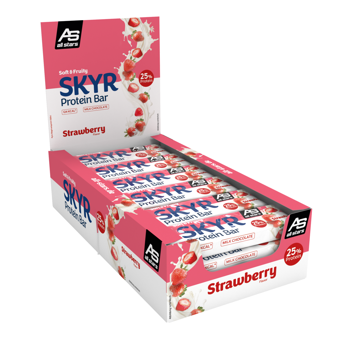 Kromě SKYR PROTEIN nyní ALL STARS nabízí také malou 35g SKYR PROTEIN Tyčinku ve 2 skvěle chutnajících příchutích: MIXED BERRIES a STRAWBERRY.