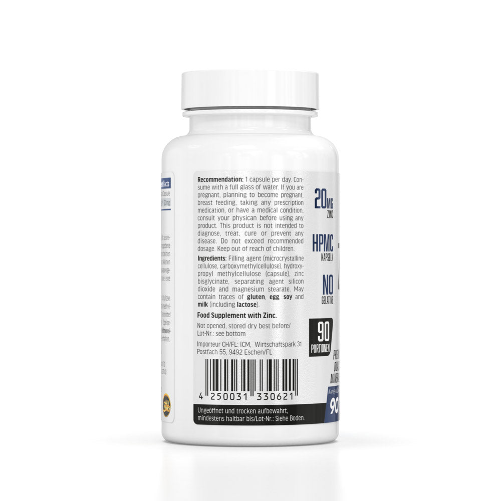 Kapsle jsou bez želatiny, 100% veganské a snadno se polykají. Doporučujeme denní dávku jedné kapsle s 20 mg zinku (ve formě zvlášť hodnotného zink-bisglycinátu). Plechovka obsahuje 90 kapslí, což vystačí na 3 měsíce. Kapsle užívejte s dostatečným množstvím tekutin.