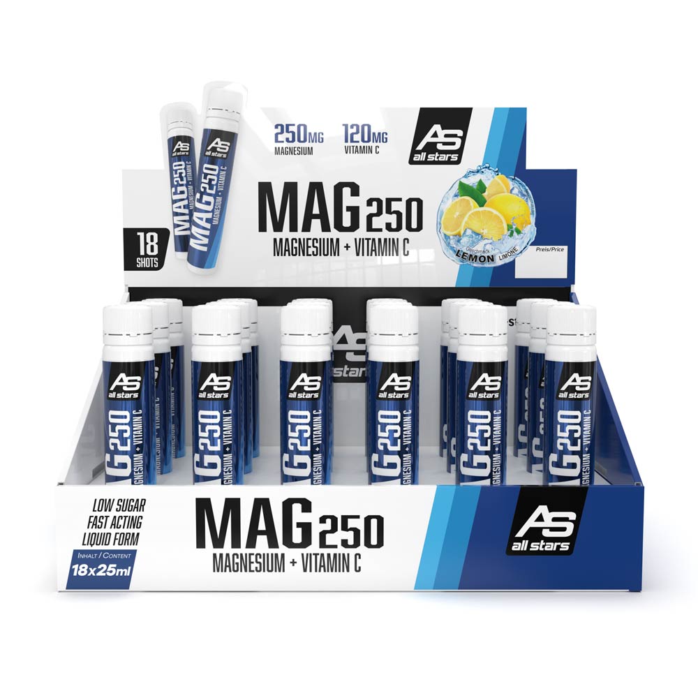 Použití hořčíko-vitaminového koncentrátu MAG 250 je možné během intenzivních tréninkových fází každý den, nejlépe v netréninkové dny ráno k snídani a v tréninkové dny před nebo po tréninku. Stačí krátce protřepat 25ml ampuli, smíchat s vodou a ihned vypít.