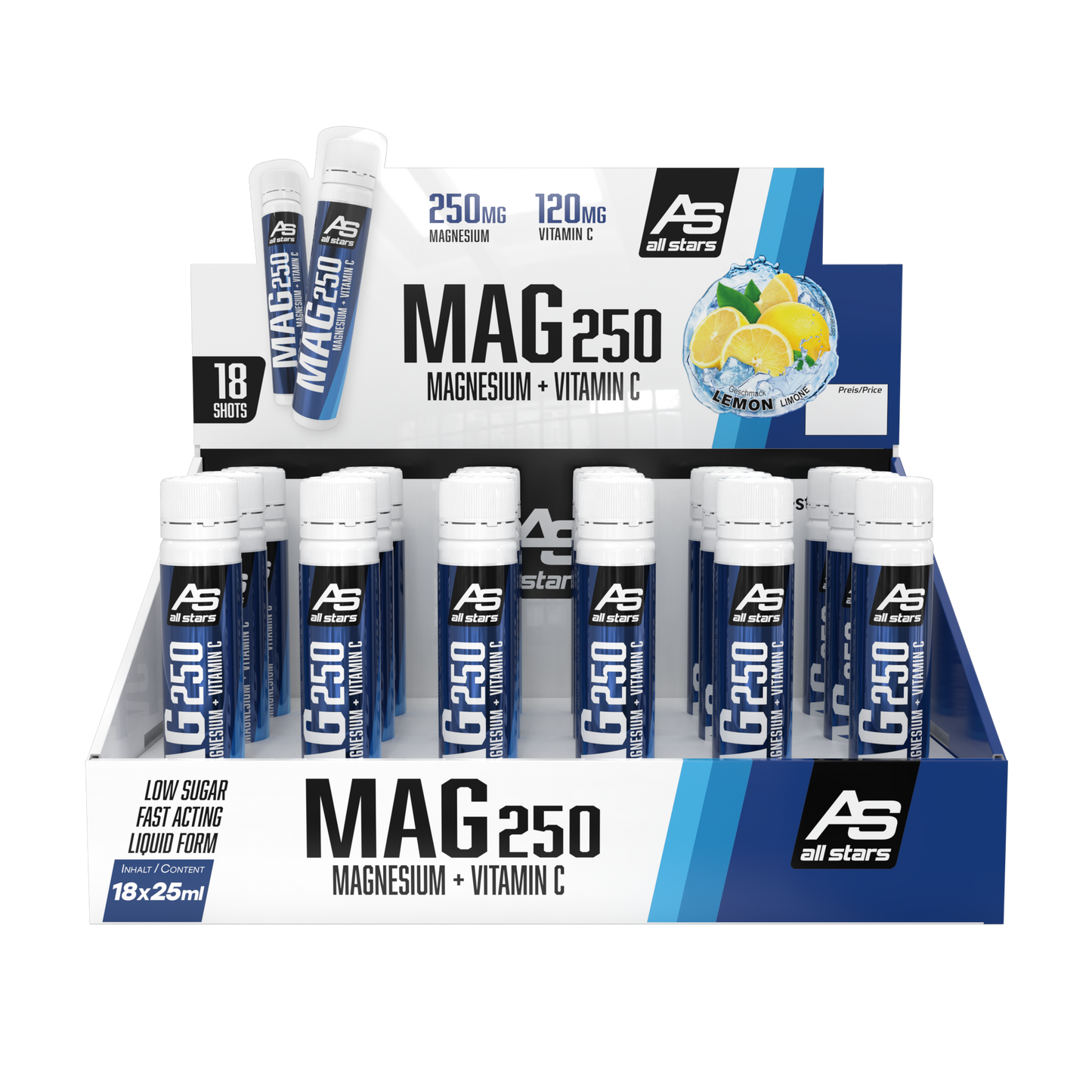 MAG 250 Pure Liquid je k dispozici v balení po 18 ampulích k pití.