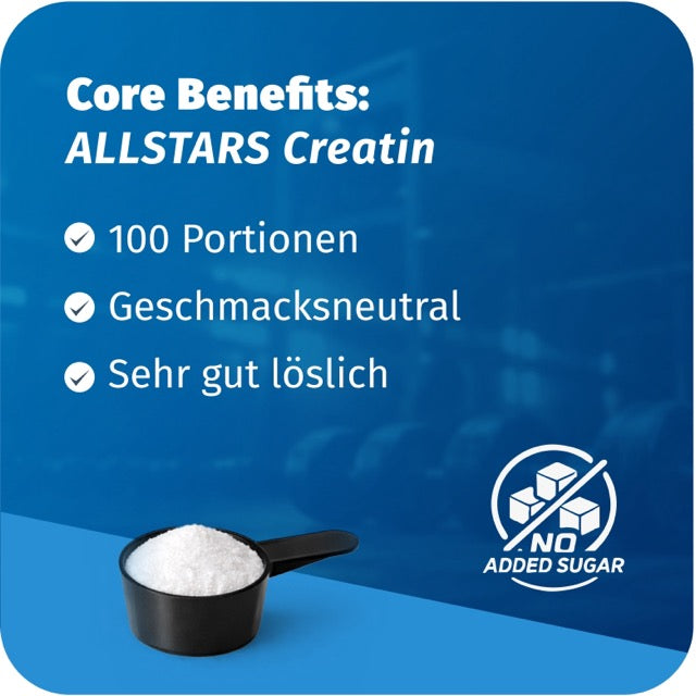 V centru pozornosti je čistá funkčnost produktu: kvalitní surovina, čisté zpracování a snadná integrace do tréninkového a stravovacího režimu. ALL STARS Kreatin je vhodný jak pro silové sportovce, tak pro atlety, kteří do svého tréninku zařazují krátkodobé, intenzivní zatížení.